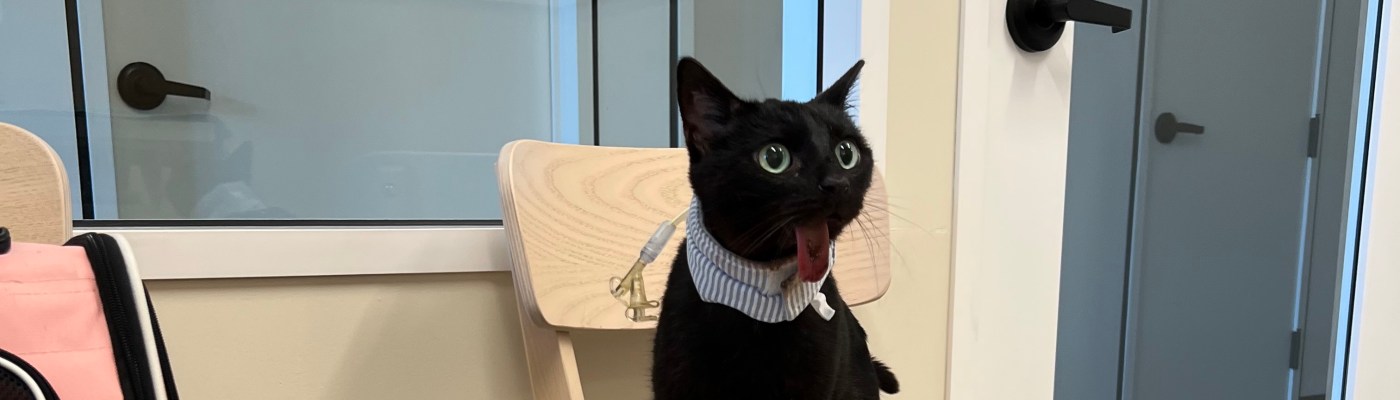 The photo I am posting here it’s the most beautiful I have of her, but it also gives me so much pain. This was a few months after surgery, when I completely fell in love with her “new” face after the mandibulectomy. And this was a day where I brought her to the vet for a check-up and she was recovering very well from the surgery. We were discussing removing the feeding tube because she was eating a lot on her own. In this photo she was looking all around the vet office, super curious and super excited to be there. She was not scared because I was there with her.